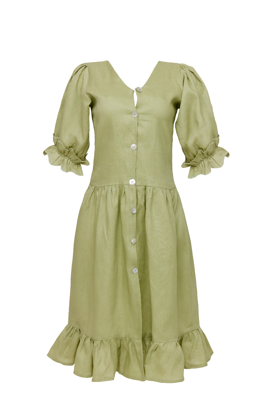 Gala Long Ruffle Dress Matcha